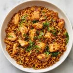 Chopped green onions are a simple yet fantastic garnish for this dish. They lend a subtle crunch and fresh bite that complements the savory noodles. If you want to get creative, sprinkle some toasted sesame seeds or fresh cilantro for an extra layer of flavor and texture.