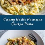 This Garlic Parmesan Chicken and Pasta recipe is a rich and creamy one-pan meal that combines tender, seasoned chicken breasts with al dente penne pasta cooked in a flavorful garlic and onion-infused chicken broth, finished with parmesan cheese, heavy cream, and fresh parsley for a comforting and delicious dinner ready in just 35 minutes.