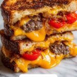 Grilled Cheese Burgers combine the best of two classic favorites: hearty, juicy cheeseburgers and crispy, melty grilled cheese sandwiches. These easy-to-make sandwiches feature perfectly seasoned and grilled beef patties layered with cheddar cheese between slices of buttered Texas toast, grilled until golden brown and ooey-gooey. Customize with your favorite toppings for a satisfying main course that’s perfect for casual meals or gatherings.