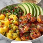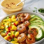 This vibrant and healthy shrimp bowl features grilled shrimp paired with a fresh mango salsa and a zesty lime-chili sauce, all served over fluffy cooked rice with creamy avocado slices. It’s a quick, delicious, and nutritious meal perfect for a light lunch or dinner.