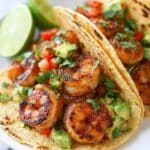 While shrimp freezes well on its own, it’s not recommended to freeze the assembled tacos or avocado salsa, as the texture can suffer. Instead, freeze any extra marinated shrimp uncooked and thaw it before grilling for another delicious meal.