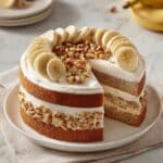 - Garnish (Optional): Decorate the cake with extra walnuts, banana slices, chocolate shavings, or a caramel drizzle as desired to enhance appearance and flavor.