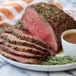 This Herb Crusted Sirloin Tip Roast is a flavorful and tender beef roast perfect for an impressive dinner. Seasoned with fresh rosemary, garlic, and fennel seeds, it’s slow-roasted to medium-rare or medium perfection and finished with a rich fennel brown gravy. The recipe uses a two-stage roasting method to ensure juicy meat with a beautifully crusted exterior and is complemented by a savory gravy that enhances every bite.