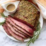 This Herb Crusted Sirloin Tip Roast is a beautifully tender and juicy beef roast, seasoned with aromatic rosemary, garlic, and fennel seeds. Slow-roasted then finished with a high-heat crust and served alongside a flavorful fennel-infused brown gravy, this recipe makes for an elegant and comforting meal perfect for special occasions or family dinners.