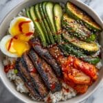 For an impressive presentation, serve the bowls in individual cast-iron skillets or bright ceramic bowls that highlight the colors of the vegetables and steak. You can also set up a hibachi-style serving board where everyone builds their own bowl—this makes dinner interactive and fun, perfect for casual gatherings or family meals.