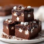 - Using a hot cocoa mix with mini marshmallows adds extra melty texture inside the fudge.
