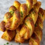 For a party, arrange the twists standing upright in a rustic wooden bowl or scatter them around a colorful platter with small dipping bowls. Consider pairing them alongside fresh veggies or a mixed salad to make the presentation vibrant and inviting, perfect for impressing your guests.