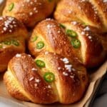 These Jalapeno Cheddar Pretzel Twists are a flavorful twist on classic soft pretzels, featuring a spicy kick from finely minced jalapenos and rich cheddar cheese melted inside a soft, golden pretzel dough. Perfect as a snack or party appetizer, these pretzels combine the satisfying chewiness of traditional pretzels with bold, cheesy heat.