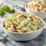 A refreshing and zesty Jalapeño Lime Ranch Slaw combining crisp shredded cabbage and carrots with a spicy kick from fresh jalapeños, all tossed in a creamy lime-infused ranch dressing. Perfect as a vibrant side dish or a light, flavorful meal.