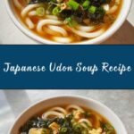 Top each bowl with thinly sliced green onions and strips of nori. These garnishes add freshness, a mild crunch, and a subtle sea breeze flavor that perfectly complements the soothing broth and chewy noodles. At this point, your homemade Japanese Udon Soup Recipe is ready to be enjoyed!