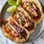 - Toppings: Sriracha mayo, sesame seeds, chopped cilantro, and lime wedges — each garnish elevates the tacos with creaminess, crunch, herbs, and a burst of citrus.