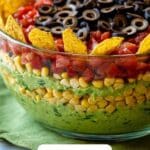 Just before serving, sprinkle chopped fresh cilantro on top for a burst of herbal freshness and an extra pop of color. Serve cold and watch your guests enjoy the celebration of textures, colors, and bold flavors in every forkful of this Layered Mexican Salad Recipe.