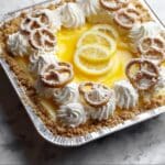 - Garnish and Serve: Before serving, slice into 12 equal portions. Garnish each slice with the remaining 4 ounces of whipped topping, extra crushed pretzels, and optional lemon slices for a bright, fresh presentation.