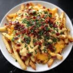 While it’s best to enjoy this Loaded Fries Recipe fresh, you can freeze cooked fries separately before loading if you want to prep in advance. Freeze the fries on a baking sheet, then transfer to a freezer-safe bag. Cheese and toppings are best added fresh after reheating.