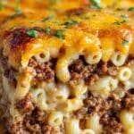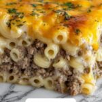 This Mac ‘n’ Cheese-Stuffed Meatloaf recipe combines the classic comfort foods of meatloaf and creamy mac and cheese into one delicious, hearty dish. Ground beef meatloaf is filled with rich macaroni and cheddar cheese, then baked to perfection with a tangy BBQ sauce glaze, making it a crowd-pleaser ideal for family dinners or special occasions.