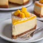 This cheesecake pairs wonderfully with a cup of green tea or a light, floral white wine like a Riesling. If you want something more substantial, fresh berries or a scoop of vanilla bean ice cream make complementary sides without overshadowing the delicate mango flavor of the cake.