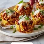 Nothing beats the delightful charm of cozy Italian comfort food like the Meatballs in Spaghetti Nests Recipe. Imagine perfectly twirled nests of tender spaghetti, each cradling a juicy meatball smothered in rich marinara sauce and melted mozzarella – a fun and satisfying twist on classic spaghetti and meatballs that’s sure to impress at any meal. This dish is as enjoyable to make as it is to eat, turning familiar flavors into individual servings that feel both special and approachable.