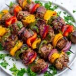 These Mediterranean Beef Kabobs feature tender sirloin steak marinated with fresh lemon, garlic, and aromatic herbs, then grilled to perfection alongside colorful vegetables. A flavorful and healthy main course perfect for a summer barbecue or weeknight dinner.