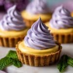 A delicate and refreshing Mini Lemon Tart topped with a floral lilac meringue, perfect for spring gatherings or elegant dessert occasions. This French-inspired treat features a buttery tart crust, tangy lemon filling, and a beautifully light, subtly floral meringue finish.