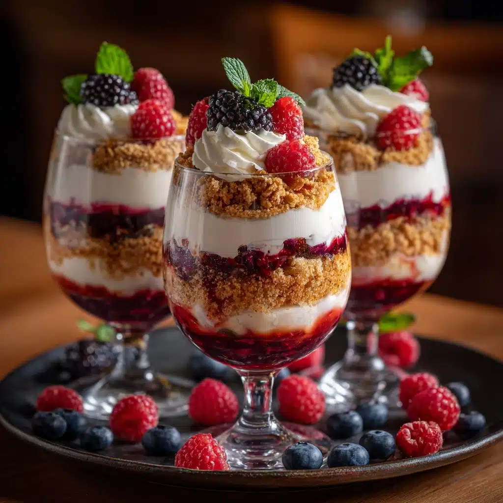 These delightful Mini Trifles are a perfect no-bake dessert featuring layers of moist pound cake, fresh mixed berries, creamy vanilla pudding, and fluffy whipped cream. Ideal for summer gatherings or individual servings, this easy-to-make treat combines freshness and indulgence in every bite.