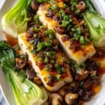 Delicious and elegant Miso Glazed Black Cod served on a bed of sautéed baby bok choy and shiitake mushrooms. This Japanese-inspired dish features tender, caramelized cod with a savory miso marinade complemented by the earthy flavors of garlic, ginger, and fresh vegetables, making it perfect for a sophisticated weeknight dinner or special occasion.