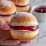6. Finishing Touch: Remove from the oven and immediately sprinkle the tops with powdered sugar. Optionally, serve with raspberry or strawberry jam for dipping.