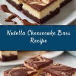 Delicious Nutella Cheesecake Bars featuring a buttery graham cracker crust, a creamy cheesecake layer, and luscious Nutella swirls. These bars are baked to perfection with a marbled effect, making them an irresistible dessert perfect for any occasion.