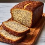 This loaf keeps beautifully at room temperature, wrapped in foil or a bread box, for up to two days. For longer freshness, store it in the fridge wrapped tightly — it will stay moist and delicious for up to five days.