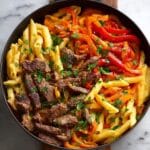 This One Pot Zesty Steak Pasta is a flavorful and hearty meal combining tender seared steak with colorful vegetables, a tomato-based sauce, and perfectly cooked pasta. It’s a quick and easy 30-minute recipe that requires just one skillet, making cleanup a breeze and delivering a deliciously comforting dish perfect for weeknight dinners.