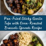 Pan-Fried Sticky Garlic Tofu with Oven-Roasted Brussels Sprouts Recipe