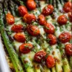 This Parmesan Roasted Asparagus with Tomatoes & Balsamic recipe is a quick, flavorful side dish that combines tender roasted asparagus spears with juicy cherry tomatoes, rich shaved parmesan, fragrant garlic, fresh basil, and a tangy balsamic reduction. Ready in just 17 minutes, it’s perfect for a healthy and elegant addition to any meal.