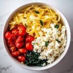 These ingredients are wonderfully simple but essential—the cherry tomatoes provide a sweet tartness and vibrant color, while the feta cheese adds a creamy, salty depth that carries the entire dish. Each ingredient plays a key role in building layers of flavor and texture that make this pasta irresistibly delicious.