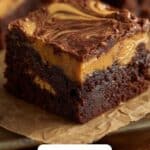 Warm the peanut butter slightly so it’s easier to drizzle, then spoon it over the brownie batter. Use a knife or skewer to swirl the peanut butter into a pretty pattern. This step adds visual appeal and ensures every bite has that irresistible peanut butter flavor.