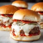 These Pizza Burgers combine the best of two classic favorites: juicy hamburger patties seasoned with Italian herbs and garlic, topped with pizza sauce, melted mozzarella, and optional pizza-style toppings. Quick to prepare and perfect for a weeknight dinner, these burgers bring the flavors of pizza right into a handheld, meaty delight.