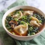 While you can freeze this soup, be mindful that potstickers may change texture slightly after thawing. If freezing, separate the soup broth from the potstickers and bok choy to freeze in one portion and combine them after reheating for best results.