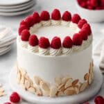 A moist and tender Raspberry Almond Cake featuring a delicate almond glaze. This American dessert combines fresh raspberries and sliced almonds in a fluffy cake base, enhanced by almond extract for a delightful nutty aroma. Perfect for berry lovers seeking a simple yet elegant treat.