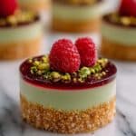 These Raspberry Pistachio Mousse Cakes are a sophisticated dessert featuring a crunchy pistachio almond crust, a luscious pistachio mousse layer, and a vibrant raspberry topping. Perfectly balanced between nutty and fruity flavors, this elegant cake requires some patience but yields a stunning and delicious treat ideal for special occasions.