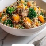 This Roasted Butternut Squash Broccoli Cheddar Chicken Couscous is a hearty and flavorful dish combining tender roasted butternut squash, sautéed chicken, steamed broccoli, pearl couscous, and melted cheddar cheese. It’s a comforting casserole perfect for a wholesome weeknight dinner with balanced textures and a delicious blend of spices.