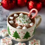 - Serve with toppings: Pour the hot chocolate into mugs and top with your choice of festive toppings such as whipped cream, crushed peppermint candies, mini marshmallows, red and green sprinkles, chocolate shavings, or candy canes for a seasonal touch. Serve immediately to enjoy warm.