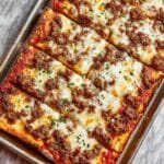 This School Cafeteria Pizza recipe replicates the classic, chewy crust and simple toppings beloved by students nationwide. Featuring a soft, slightly sweet dough made with instant non-fat dry milk and baked in a sheet pan, this pizza offers an easy, crowd-pleasing meal perfect for a family dinner or group gathering.