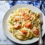 For a delightful dinner party twist, serve the Shrimp and Salmon Alfredo Recipe in individual bowls garnished with edible flowers or a twist of lemon zest for a pop of color. Alternatively, plate the pasta in nests topped with seafood and drizzle any leftover sauce artistically around the plate for a restaurant-quality presentation your guests will adore.