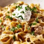 This Sour Cream Beef Noodle Casserole Recipe freezes beautifully. Just cool completely before wrapping tightly in foil or placing in a freezer-safe container. Freeze for up to 2 months for a quick and comforting meal anytime.