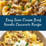 This Sour Cream Beef Noodle Casserole is a comforting and creamy dish combining savory ground beef, tender egg noodles, and a rich mushroom soup sauce finished with melted cheddar cheese. Perfect for a hearty family dinner, this easy-to-make casserole brings together simple ingredients in a flavorful bake that’s both satisfying and delicious.