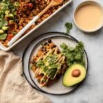 Absolutely! This Southwestern Black Bean Casserole Recipe is naturally vegan when you use nutritional yeast instead of cheese and plant-based toppings like avocado and chipotle mayo.