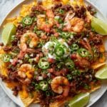 These Spicy Cajun Crawfish Nachos are a flavorful twist on classic nachos, featuring succulent crawfish tails seasoned with bold Cajun spices, melted cheddar and Monterey Jack cheeses, and fresh toppings like green onions, tomatoes, cilantro, jalapeños, and lime. Perfect for game day or casual gatherings, this dish combines crispy tortilla chips with a zesty seafood kick and creamy sour cream for dipping.