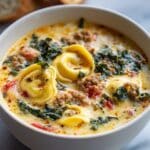 A rich and flavorful Spicy Sausage and Tortellini Soup combining savory Italian sausage, tender cheese tortellini, fresh spinach, and a creamy broth with a hint of heat. Perfect for a comforting weeknight dinner with classic Italian-American flavors.