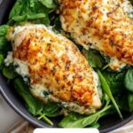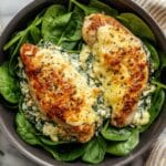 This Spinach and Cheese Stuffed Chicken Breast recipe combines tender boneless chicken breasts with a flavorful filling of fresh spinach, ricotta, mozzarella, Parmesan cheese, and garlic. The chicken is seared to a golden brown on the stovetop before finishing in the oven, resulting in juicy, cheesy, and savory stuffed chicken perfect for a wholesome dinner.