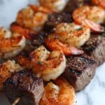 Reheat leftover kabobs gently in a preheated oven at 300°F for about 10 minutes or until warm throughout. Avoid microwaving if possible, as this can toughen the steak and rubberize the shrimp. A quick sear on a hot pan also works well to recapture some of the grill’s charred flavor.