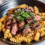 This Sticky Honey Garlic Steak and Rotini recipe is a quick and flavorful dish combining tender, thinly sliced steak with a sweet and savory honey garlic sauce, served over perfectly cooked rotini pasta. Ready in just 25 minutes, it’s an ideal weeknight dinner that features a delightful balance of flavors and an easy preparation method that brings restaurant-quality taste to your home kitchen.