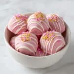 Delight in these luscious Strawberry Cheesecake Truffle Balls, a no-bake treat blending creamy cream cheese, sweet powdered sugar, and crunchy graham cracker crumbs with the vibrant flavor of dried strawberries. Coated in smooth white chocolate, these bite-sized truffles make an irresistible dessert or snack perfect for parties or any special occasion.